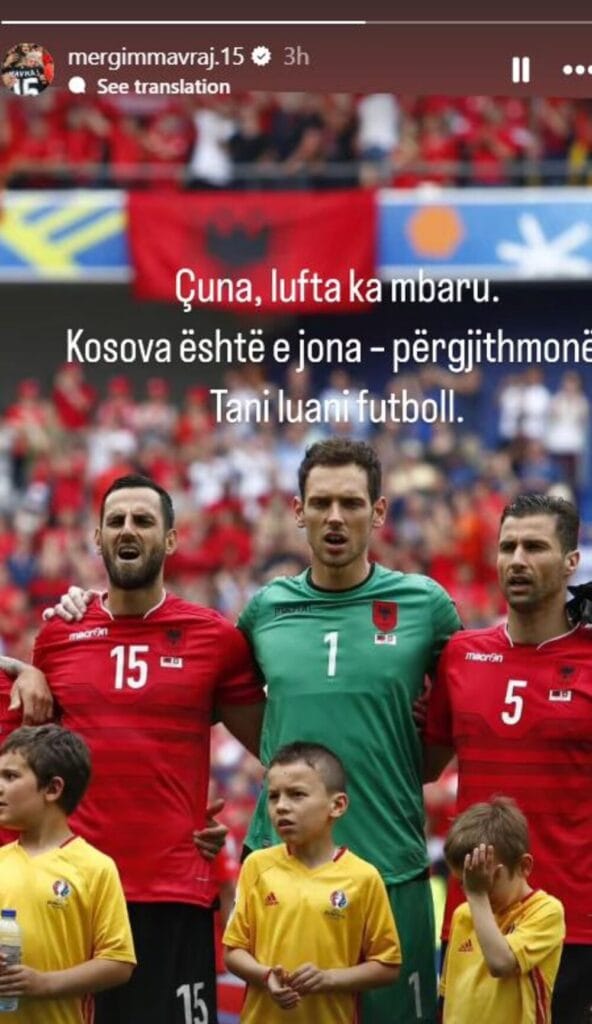 „Momci, rat je gotov. Kosovo je naše, zauvek. Sad igrajte fudbal“, poručio je Mavraj putem društvenih mreža.
