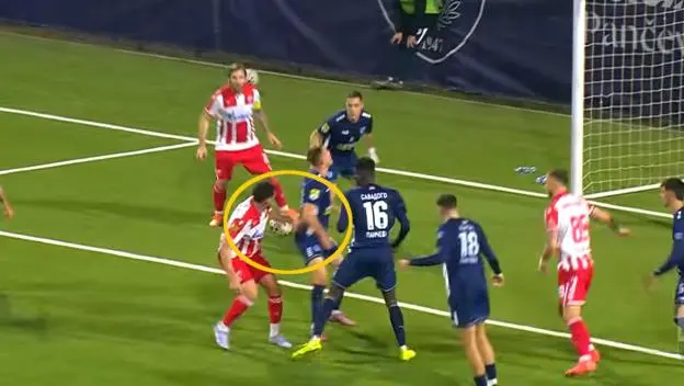 Naime, pre no što je stigla do Austrijanca, lopta je pogodila u ruku Zvezdinog štopera Miloša Veljkovića koji se našao u kaznenom prostoru protivnika.