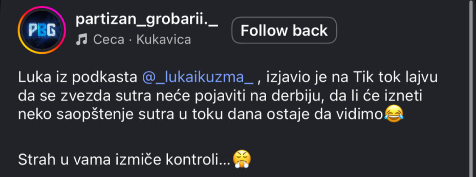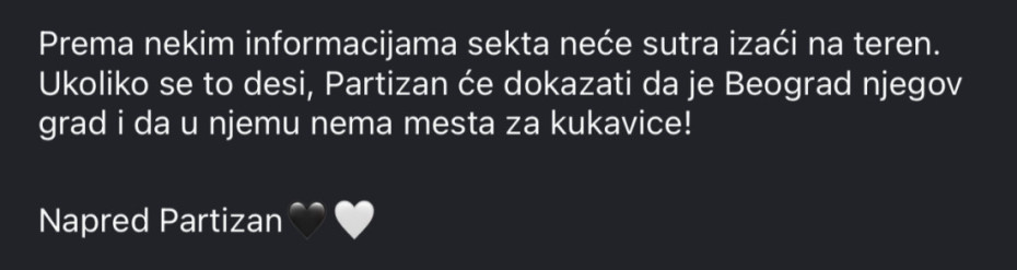 Ove informacije uglavnom dolaze sa navijačkih stranica i nemaju zvaničnu potvrdu iz kluba. Crvena zvezda večeras od 19.30 dočekuje Partizan u okviru poslednjeg kola druge faze ABA lige.