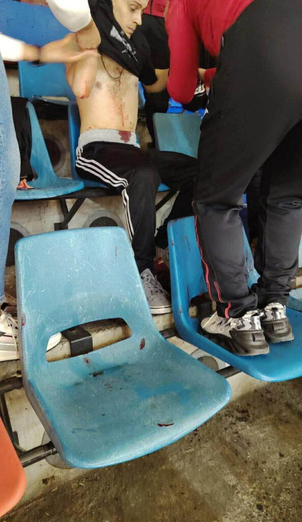 Na terenu je odmah nastala zbrka, jer su navijači apelovali da se prekine nasilje na tribinama. Letjele su i stolice, a meč je odmah nakon toga prekinut. Jedan navijač prevezen je u bolnicu.