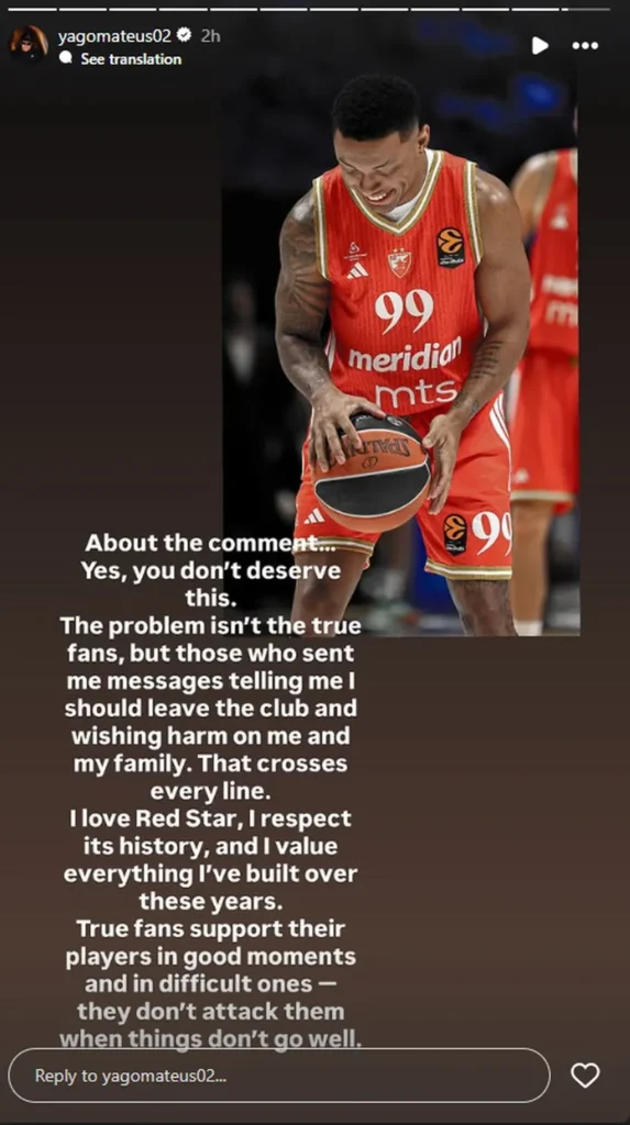 Brazilski košarkaš Jago dos Santos ponovo je u centru pažnje zbog izjave koja je izazvala reakcije među navijačima Crvene zvezde. Njegov komentar, u kom je poručio da ga klub „nije zaslužio“ u najboljem izdanju, brzo je odjeknuo među pristalicama crveno-belih.