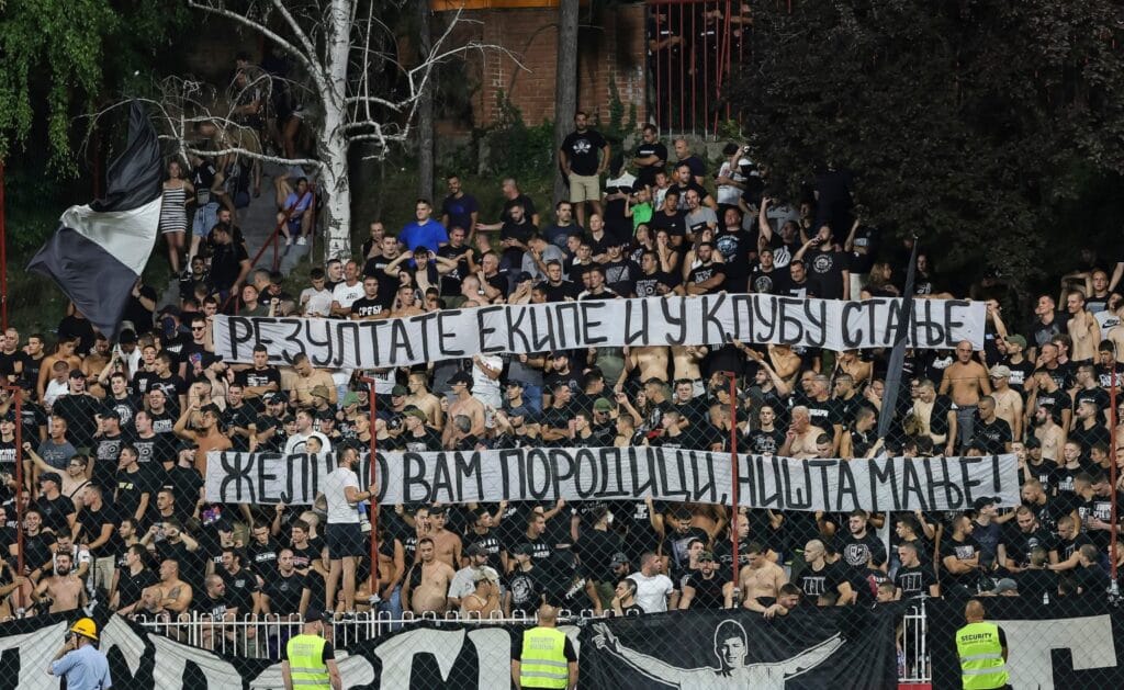 S obizrom da je u pitanju gostovanje, crno-beli imaju podršku najvatrenijih navijača, koji su još jednom iskoristili priliku da iskažu nezadovoljstvo prema upravi.
